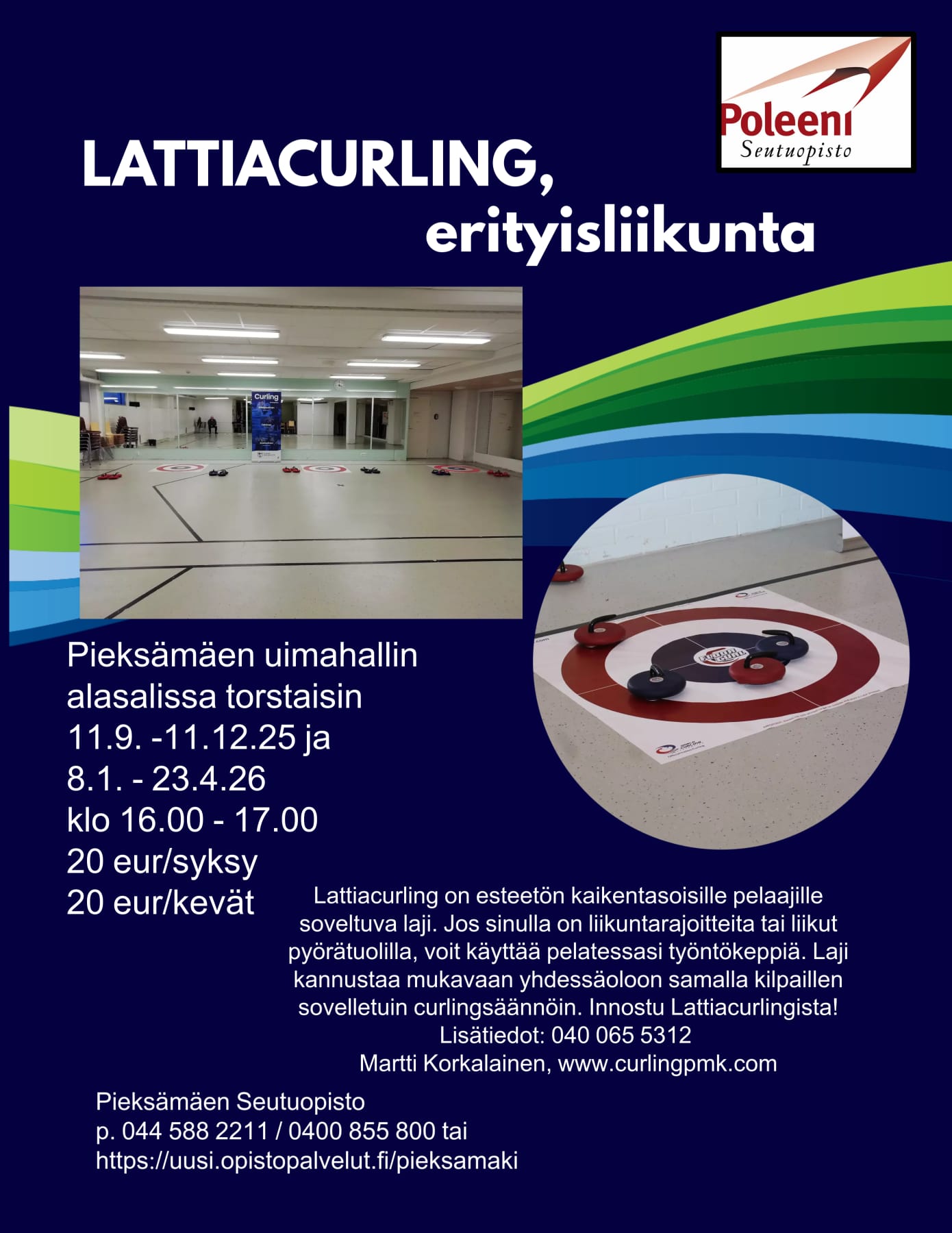 Lattiacurling jatkuu, ilmoittaudu seutuopistoon linkki. Tervetuloa pelaamaan niin uudet kuin jo kurssin käyneet, Ilmoittaudu Martille 0400655312